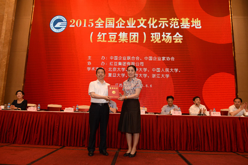 6月6日,在無錫市紅豆杉莊舉辦的2015全國企業文化示范基地(紅豆集團)現場會上,紅豆集團被中國企業聯合會、中國企業家協會授予“全國企業
