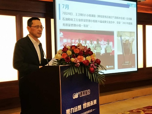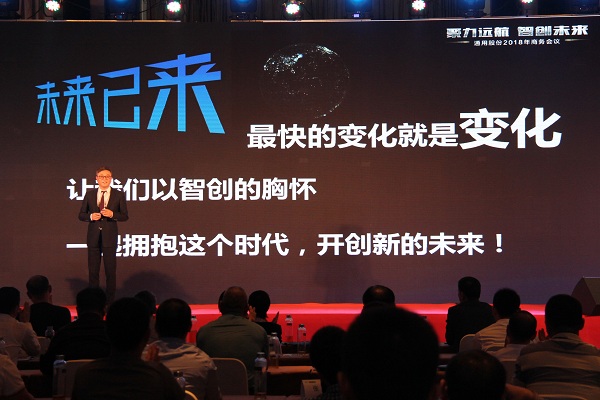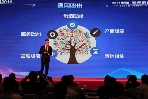通用股份董事長顧萃先生在會議上作了“賦能2018”的重要主題演講?;厥?017,顧董對宏觀經(jīng)濟和行業(yè)情況進行了生動解讀。展望2018,顧董以“大、新、快、鏈”四個字闡述了當(dāng)下時代的發(fā)展趨勢,探討了智能化以及創(chuàng)新思維對未來工業(yè)和生活的深遠影響。通用股份將從“制造、產(chǎn)品、營銷、管理、服務(wù)”五大賦能促進變革發(fā)展,搶占先發(fā)優(yōu)勢,智能制造升級,全球化視野布局,全方位提高效率,做最好的自己。