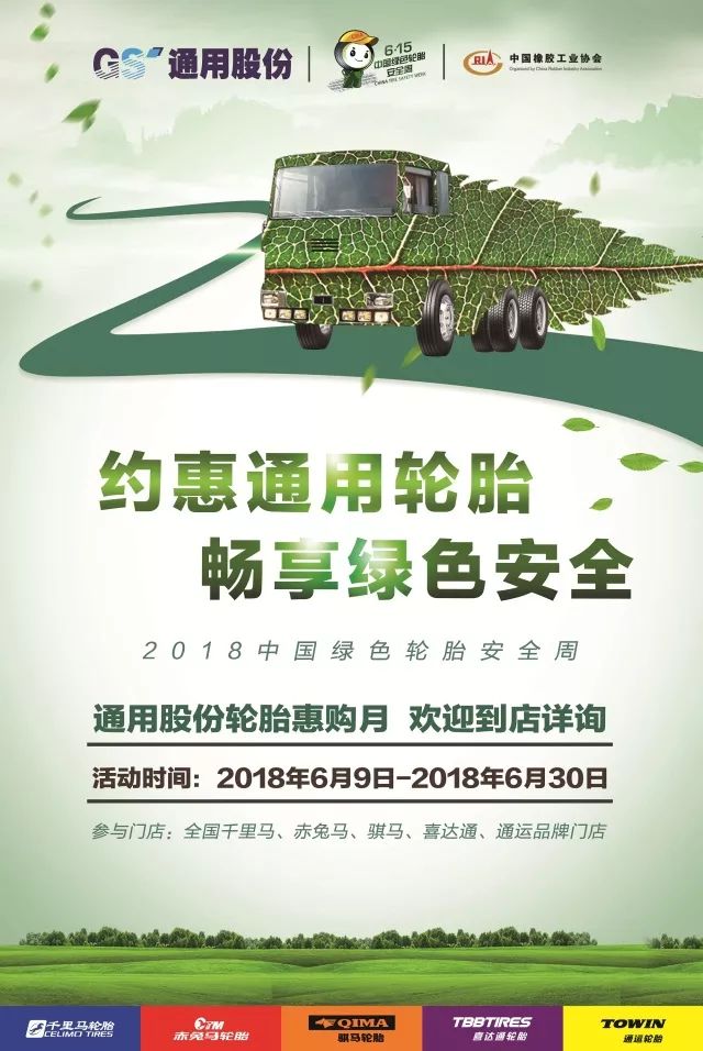 為了讓更多的普通消費(fèi)者了解什么是綠色節(jié)能輪胎,輪胎標(biāo)簽的作用,以及輪胎安全使用知識(shí),同時(shí)也為了答謝消費(fèi)者長期以來的支持,通用股份在全國通用品牌門店(千里馬、赤兔馬、通運(yùn)、騏馬、喜達(dá)通)開展“約惠通用輪胎 暢享綠色安全”的輪胎惠購活動(dòng)(2018年6月9日至6月30日),并采取滿減優(yōu)惠、幸運(yùn)抽獎(jiǎng)、好禮相送等形式,以實(shí)實(shí)在在的優(yōu)惠,與消費(fèi)者共同擁抱安全出行。