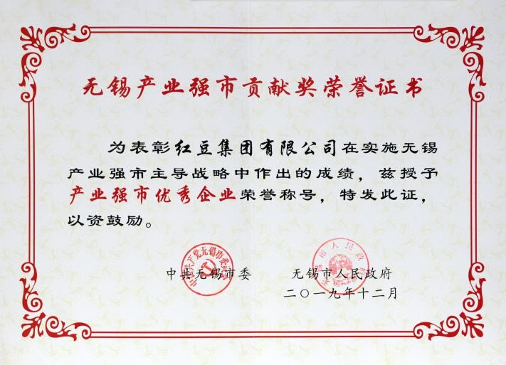 12月20日,無錫市政府召開無錫市產(chǎn)業(yè)強市貢獻獎、科技創(chuàng)新貢獻獎頒獎大會。會上,紅豆集團榮獲“產(chǎn)業(yè)強市優(yōu)秀企業(yè)”稱號,紅豆集團董事局主席兼CEO周海江出席會議并接受頒獎。此次獲獎是對紅豆集團在推動“強富美高”新無錫建設中所作貢獻的肯定。