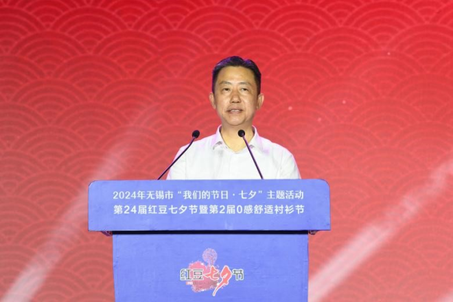 無(wú)錫市委宣傳部常務(wù)副部長(zhǎng)蔡文煜在致辭中表示,過(guò)去二十多年里,紅豆集團(tuán)始終堅(jiān)持以傳統(tǒng)文化為寄托,以七夕節(jié)為契機(jī),通過(guò)詩(shī)歌朗誦會(huì)、七夕節(jié)民俗論壇、尋找當(dāng)代“王維”、感動(dòng)中國(guó)的愛(ài)情故事征集等多種形式的活動(dòng),將弘揚(yáng)中國(guó)傳統(tǒng)文化落到實(shí)處。紅豆集團(tuán)連續(xù)24年舉辦的“紅豆七夕節(jié)”,不僅是紅豆企業(yè)品牌建設(shè),充分挖掘七夕文化內(nèi)涵的具體行動(dòng),更是紅豆學(xué)習(xí)貫徹落實(shí)習(xí)近平文化思想,持續(xù)推進(jìn)中國(guó)傳統(tǒng)節(jié)日振興,推動(dòng)中華優(yōu)秀傳統(tǒng)文化傳承發(fā)展的具體實(shí)踐。