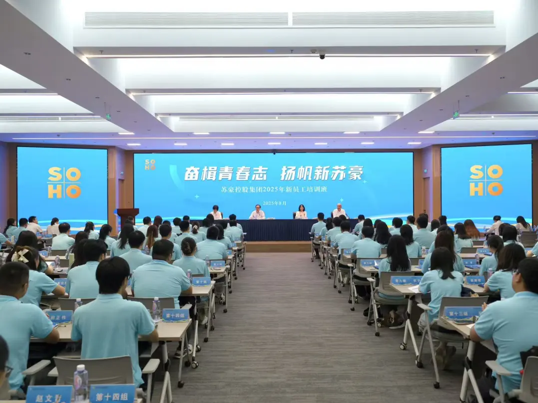 8月21日,以“奮楫青春志 揚帆新蘇豪”為主題的蘇豪控股集團2025年新員工培訓班在南京開班。培訓旨在幫助200余名應屆大學畢業生更好地認識蘇豪、融入蘇豪、建功蘇豪,開啟嶄新的職業征程。集團黨委書記、董事長周勇作開班動員講話,集團黨委副書記陳萬寧出席開班式。