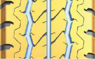 ·寬大的花紋塊設(shè)計,配合曲折的花紋溝槽,擁有更好的抓地性能,行駛更加安全。